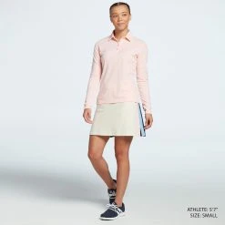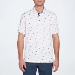 - Three-button polo collar for on course ready look