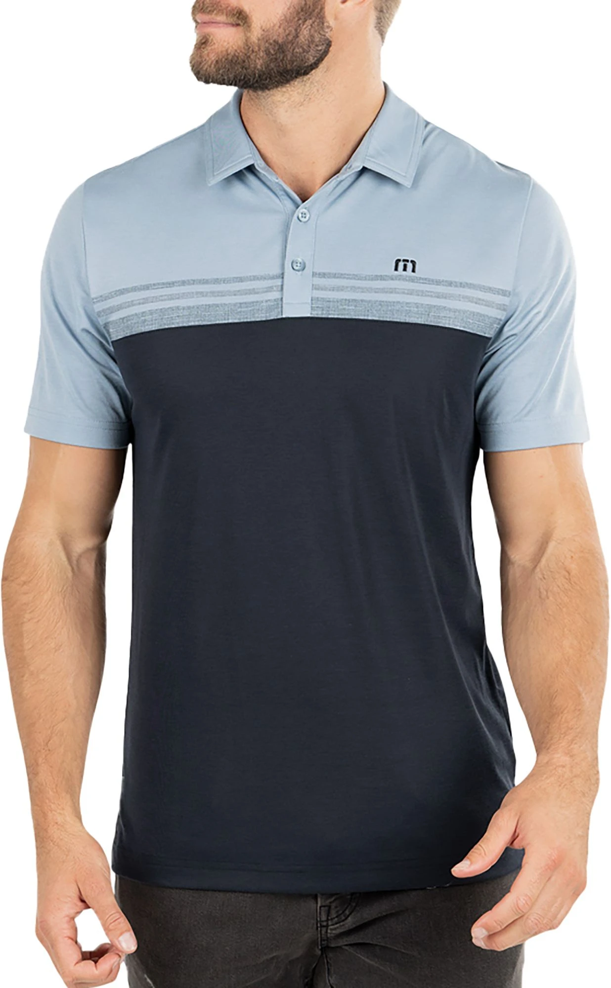 - Signature TravisMathew logo on back yoke