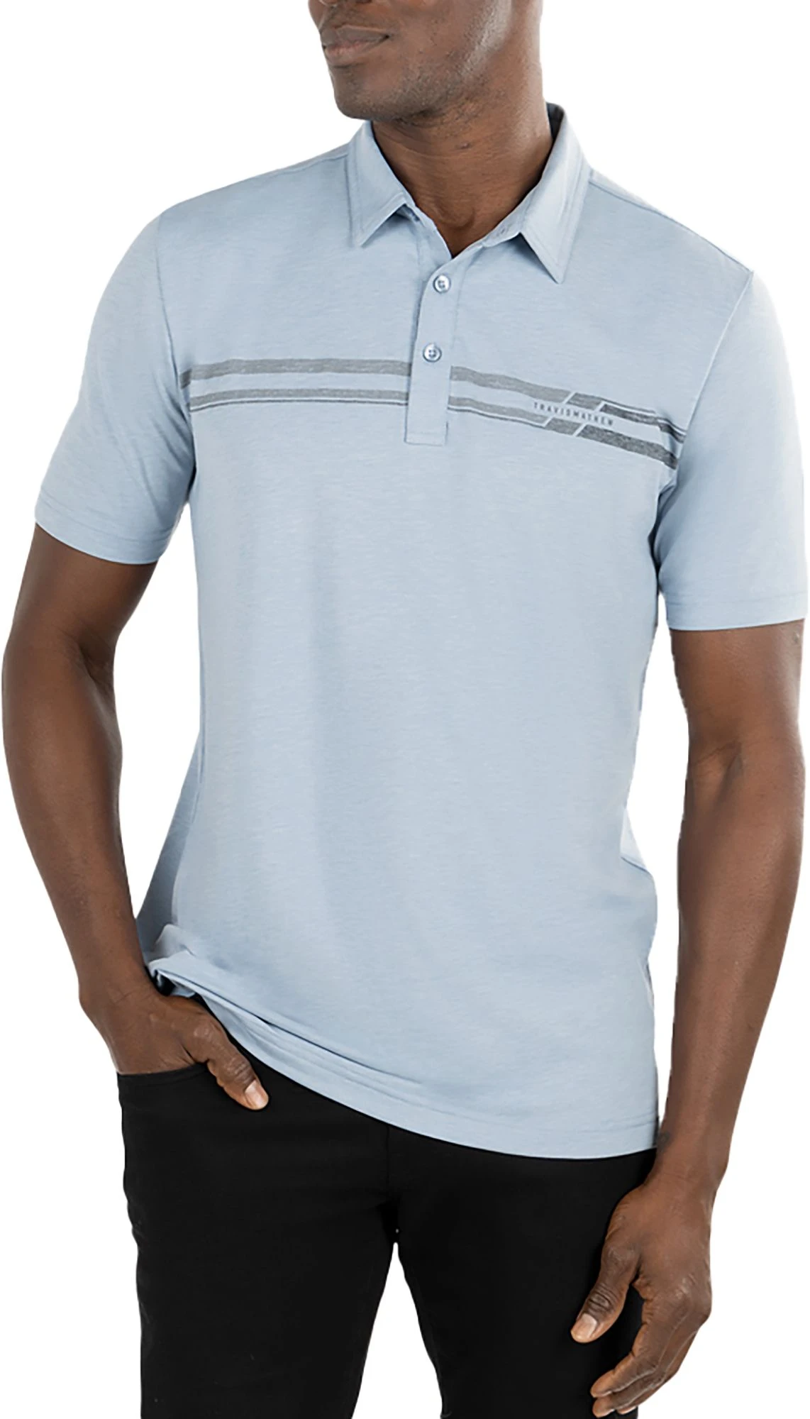 - Standard fit with a 3-button placket
