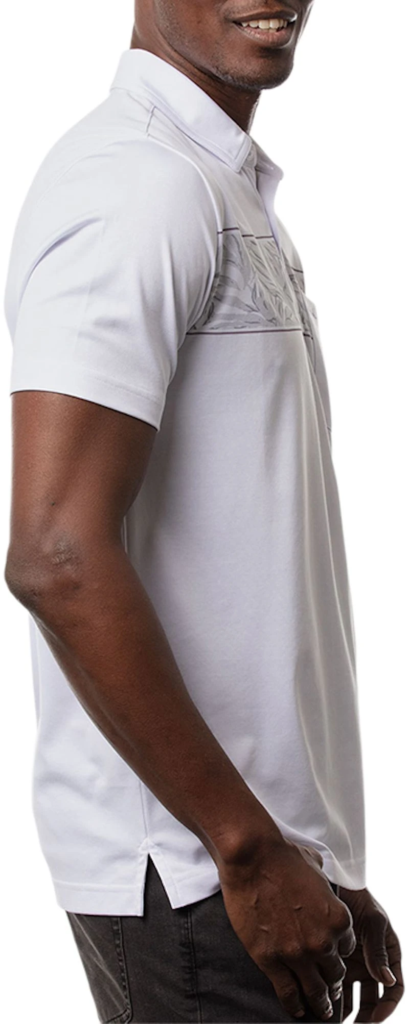 - Updated chest stripe featuring a greyscale palm print adds to your style